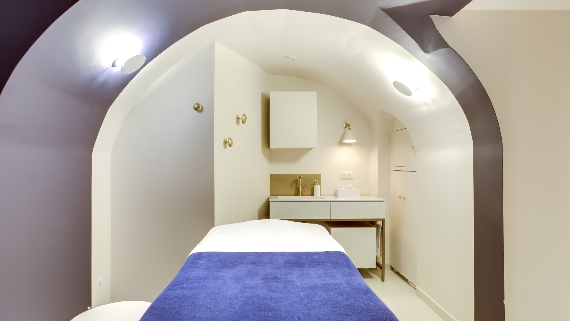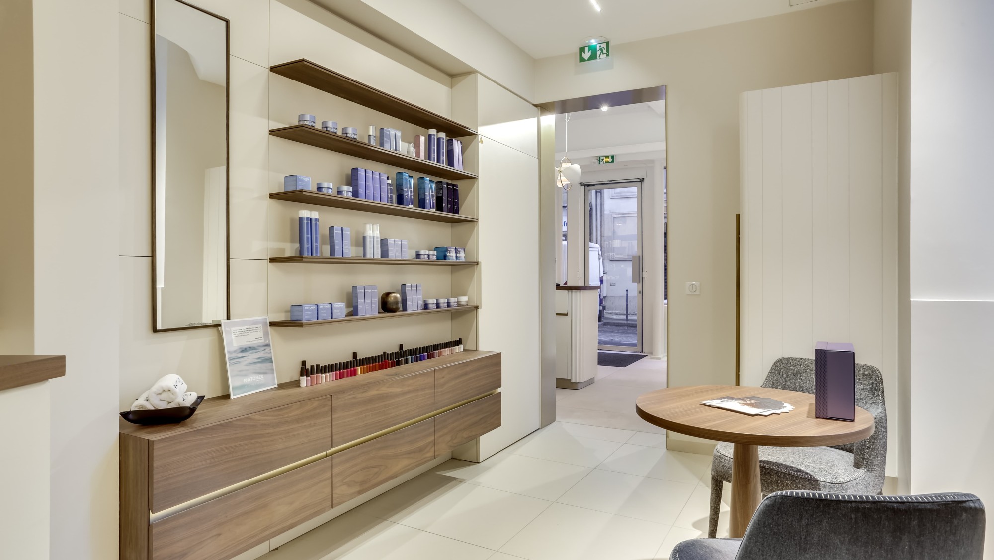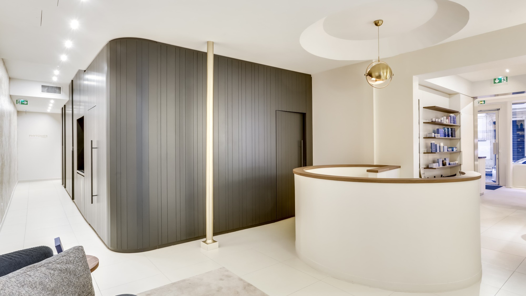 For its first urban spa, Phytomer Spa Étoile, the brand’s showcase, enjoys a prestigious location just a stone’s throw from the legendary Avenue des Champs-Élysées. The quality of the development, overseen by Quadrilatère, had to meet the required standard. In particular, Quadrilatère worked meticulously to light the reception area, to showcase the available products and the treatment rooms.