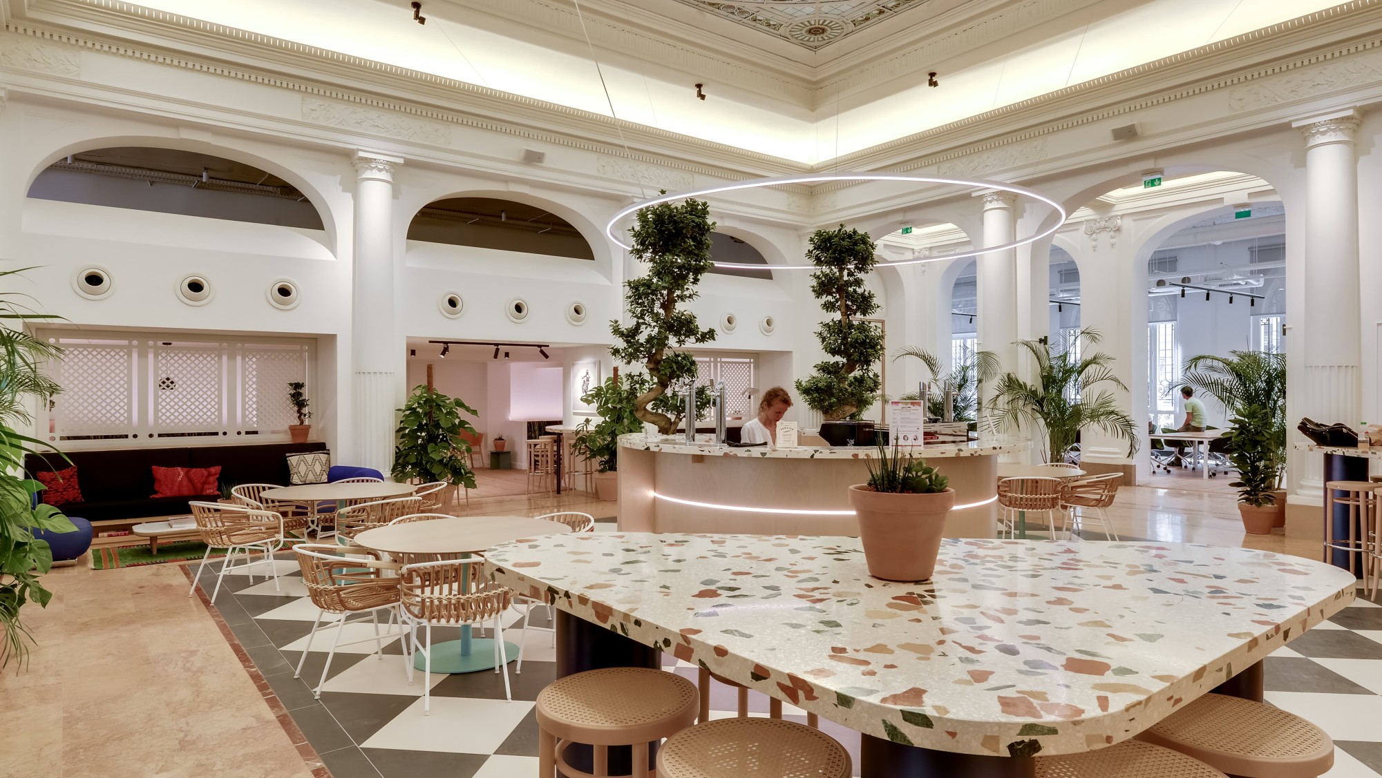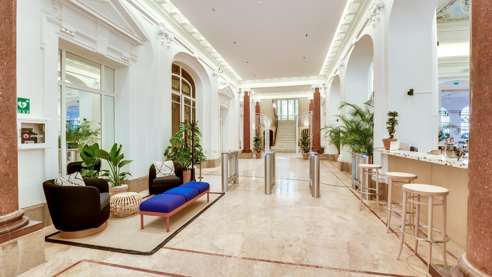 The WeWork on Rue Jules Lefebvre in Paris is the third created by Quadrilatère, but also the biggest : 13,000 sq. m. in total, split between two buildings, which enabled us to divide the works into two phases of five months each. The first phase, delivered in June 2019, involved the 9,000 sq. m. of the building dating from 1910, with its stunning historical spaces. The second phase, delivered in December 2019, involved the 4,000 sq. m. of the adjacent building dating from 1950.