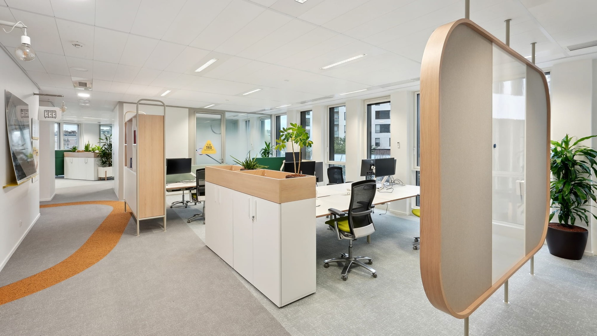 Côté organisation, Quadrilatère a dû adapter ses travaux à l’activité du reste du bâtiment, puisque GRTgaz n’occupe que 2 niveaux de Citizen 2 ; et respecter un timing serré de 4 mois et demi.