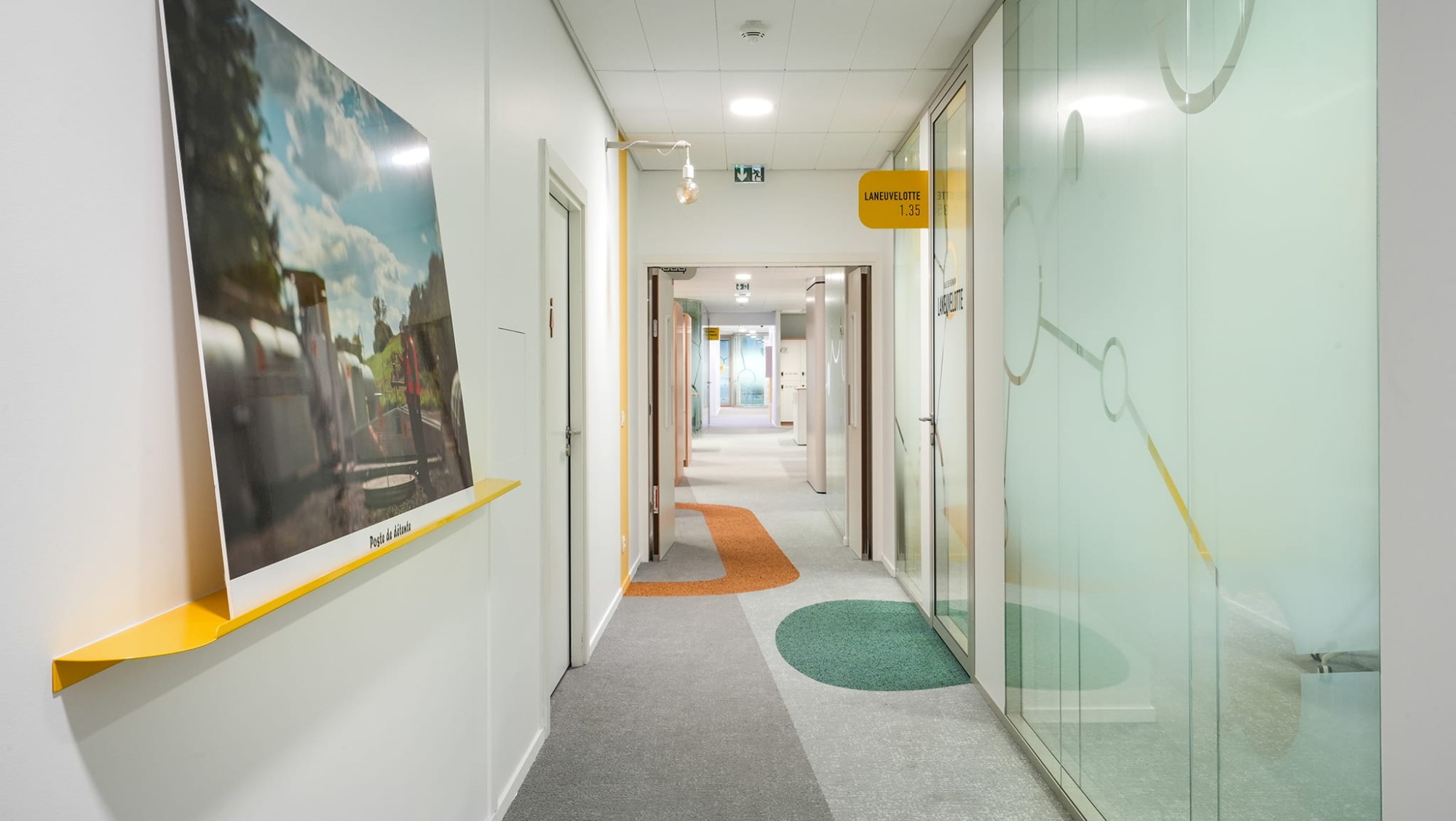 - l’acoustique : tous les plafonds ont été remplacés par des dalles acoustiques, tous les revêtements de sol comportent une sous-couche acoustique pour une meilleure absorption du bruit, le montage des cloisons a été optimisé afin d’éviter toute fuite acoustique et des essais acoustiques ont été réalisés avant et après les travaux.