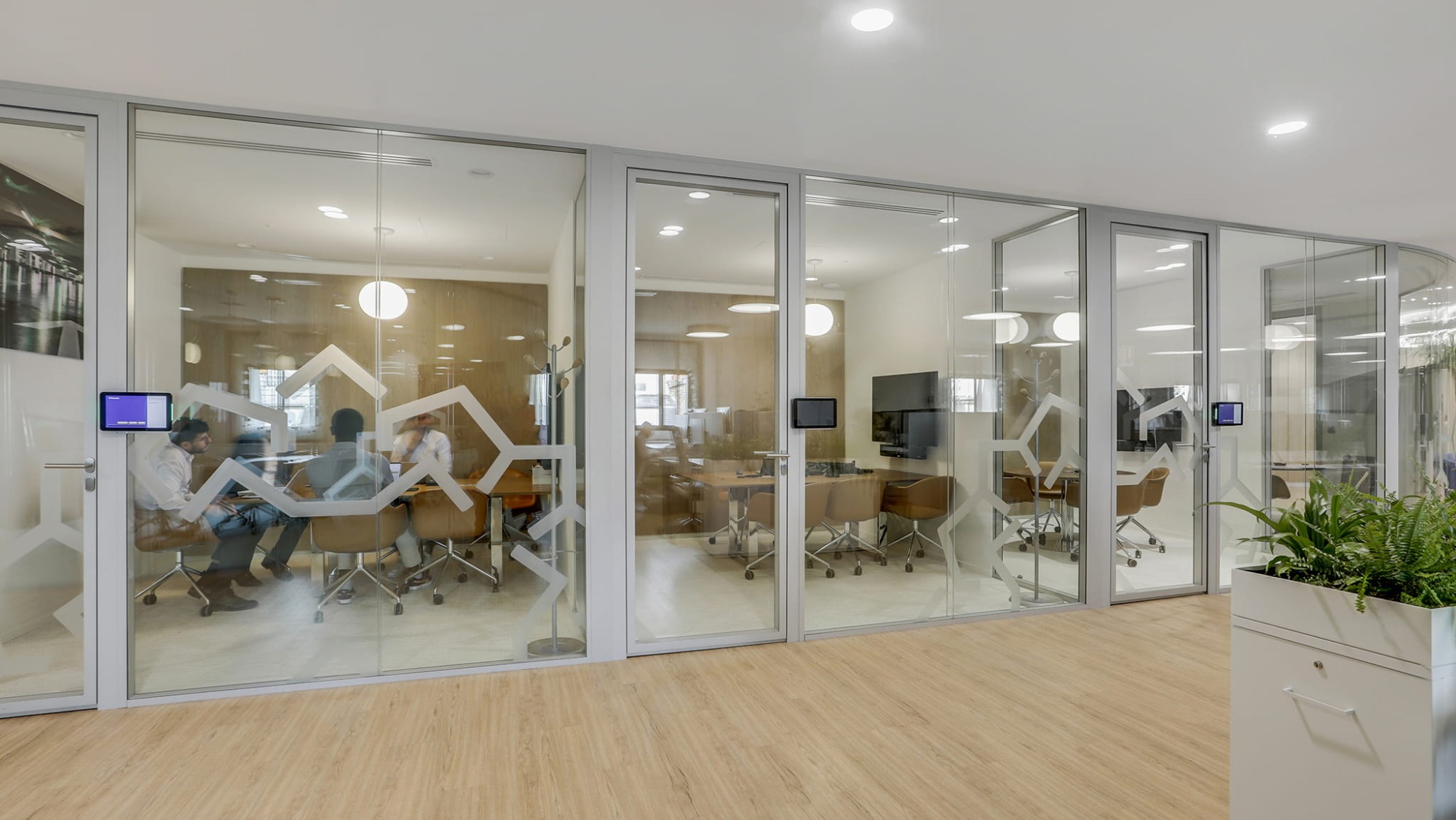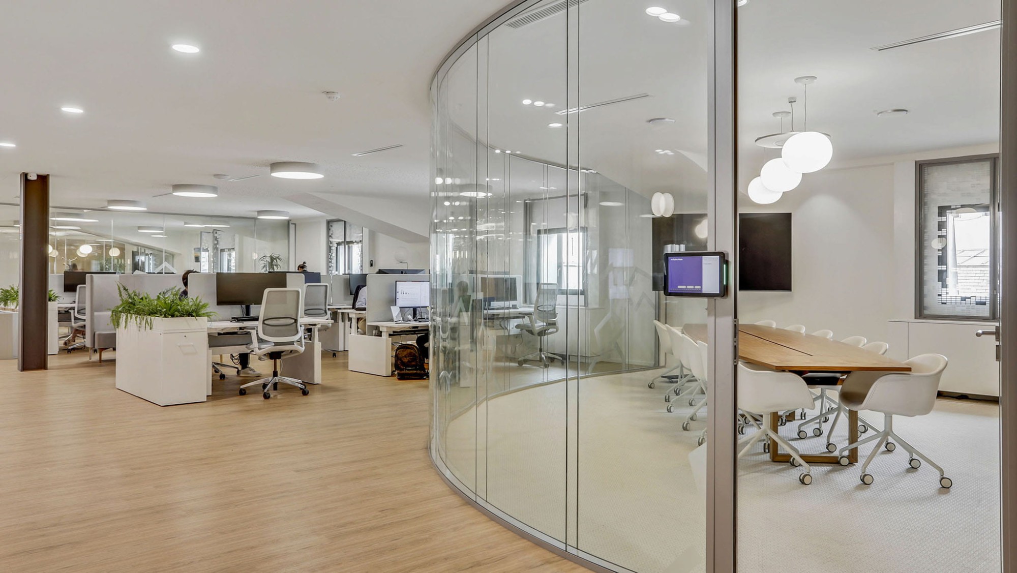 Doté d’un atrium central sous verrière, « Le Centorial » offre aux nouveaux bureaux de Vauban une luminosité exceptionnelle, grâce aux grandes baies vitrées côté cour. Cette luminosité, primordiale pour notre cliente, a été accentuée par le design de notre équipe conception : du blanc sur tous les murs, ainsi que le sol des salles de réunion, beaucoup de cloisons vitrées et un éclairage artificiel dimmable.